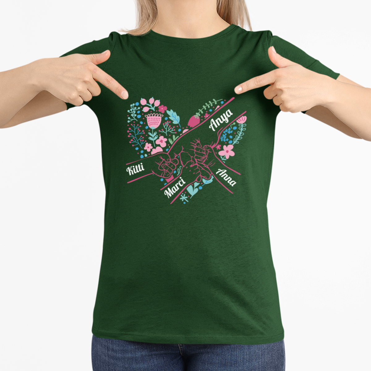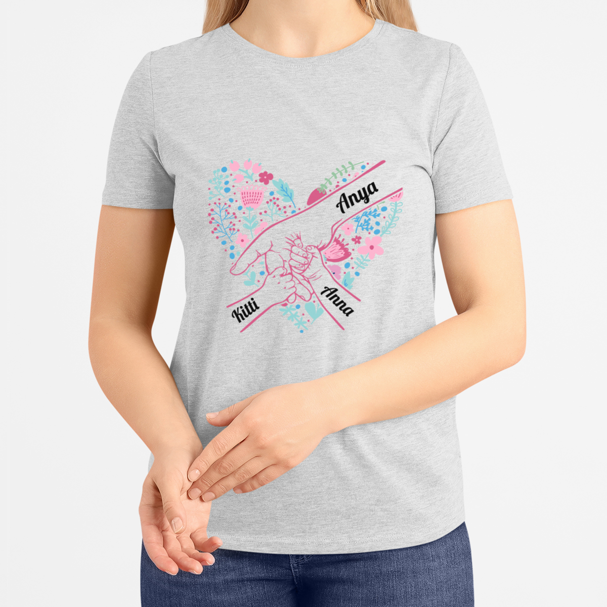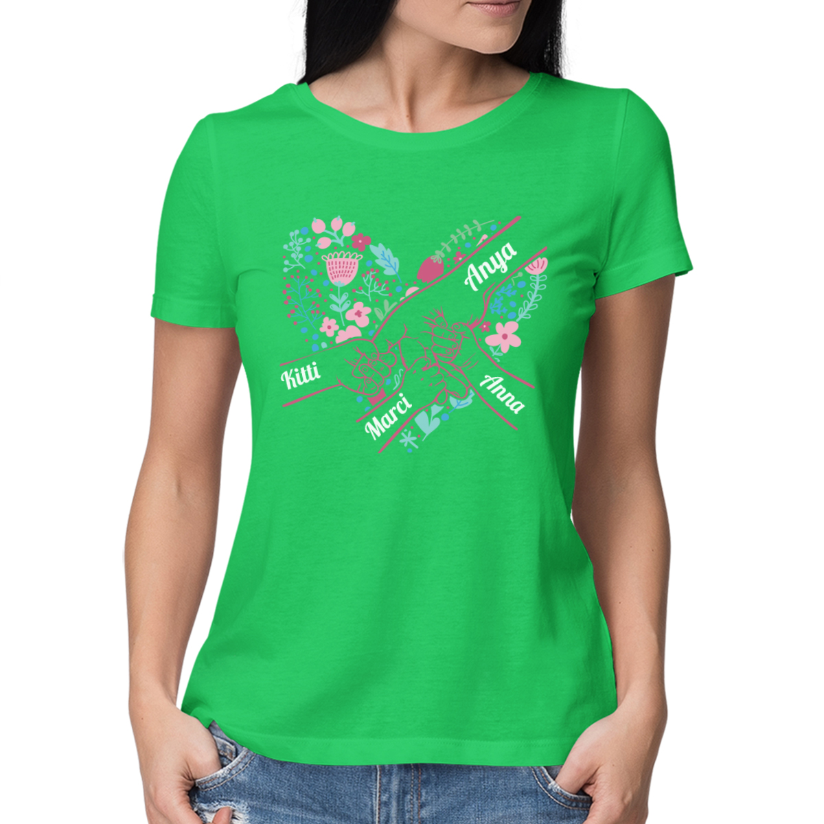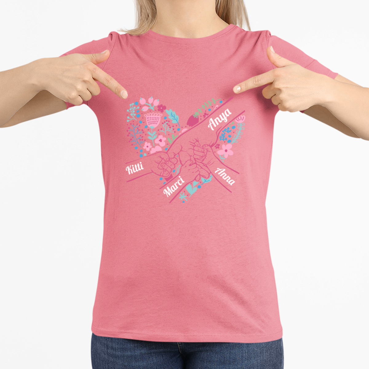 "Anya szíve" női póló, kiválasztott gyermeknevekkel