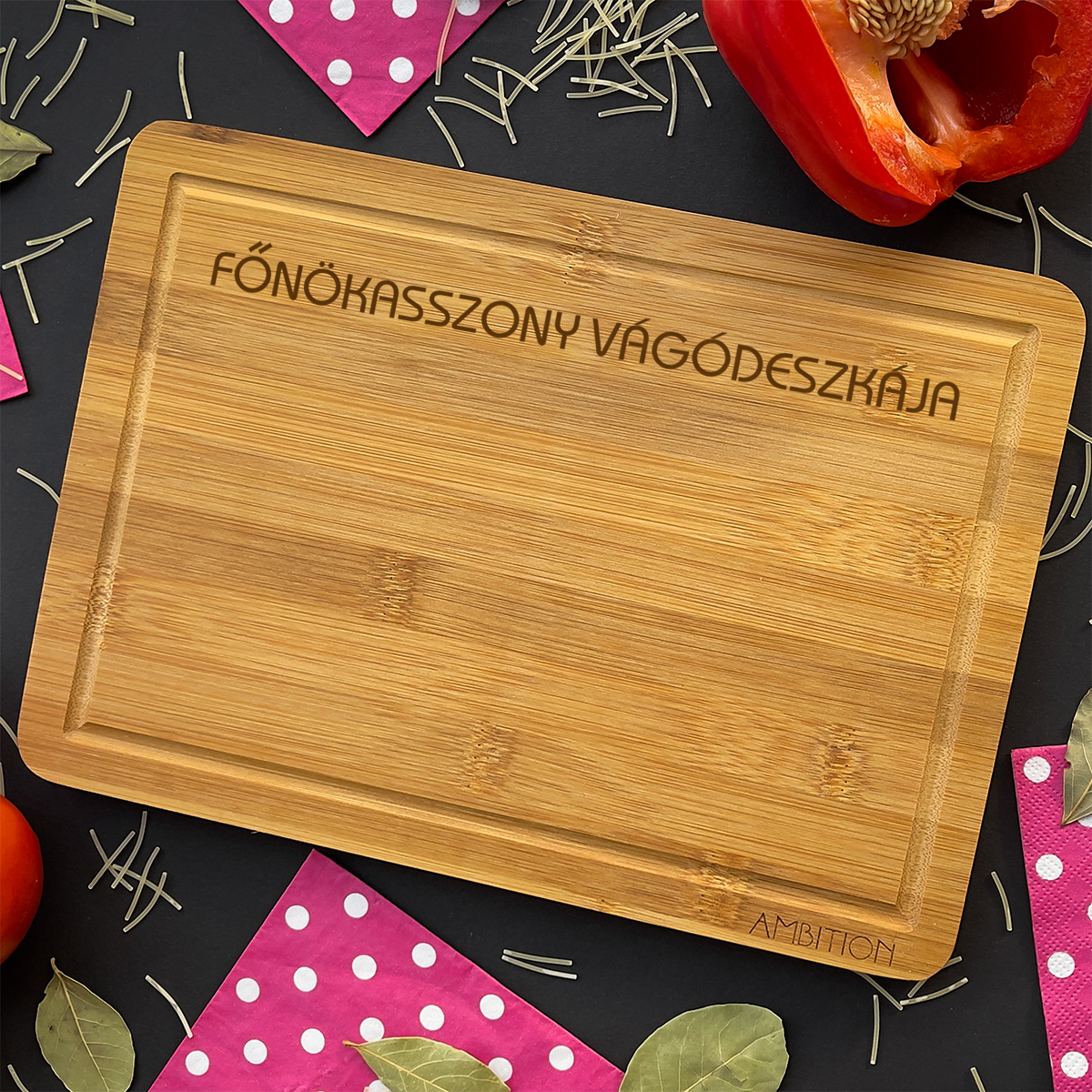 Bambusz vágódeszka "Főnökasszony vágódeszkája"