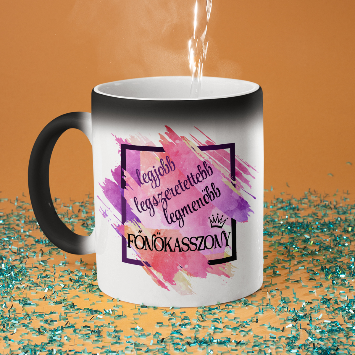 - Varázsbögre – nem véletlenül hívják varázsbögrének! Első ránézésre egy egyszerű fekete bögre, de amikor forró vizet öntesz bele, fehérre változik, és a rejtett nyomat megjelenik. Igazi meglepetés és egy kis csoda minden nap!