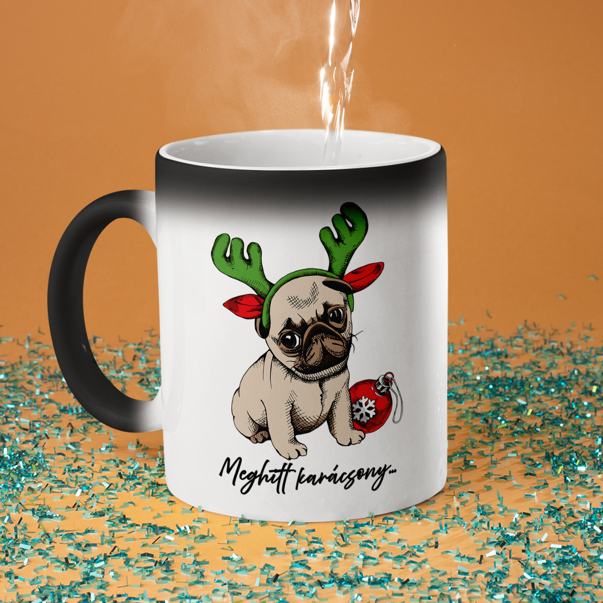- Varázsbögre – nem véletlenül hívják varázsbögrének! Első ránézésre egy egyszerű fekete bögre, de amikor forró vizet öntesz bele, fehérre változik, és a rejtett nyomat megjelenik. Igazi meglepetés és egy kis csoda minden nap!