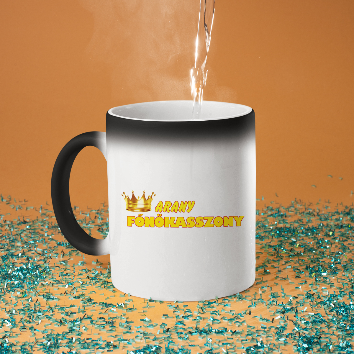 - Varázsbögre – nem véletlenül hívják varázsbögrének! Első ránézésre egy egyszerű fekete bögre, de amikor forró vizet öntesz bele, fehérre változik, és a rejtett nyomat megjelenik. Igazi meglepetés és egy kis csoda minden nap!