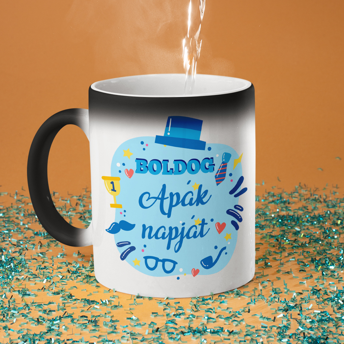 - Varázsbögre – nem véletlenül hívják varázsbögrének! Első ránézésre egy egyszerű fekete bögre, de amikor forró vizet öntesz bele, fehérre változik, és a rejtett nyomat megjelenik. Igazi meglepetés és egy kis csoda minden nap!