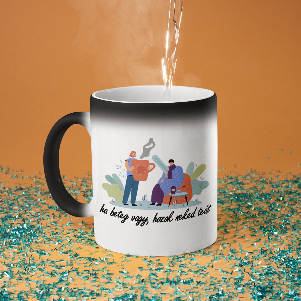 - Varázsbögre – nem véletlenül hívják varázsbögrének! Első ránézésre egy egyszerű fekete bögre, de amikor forró vizet öntesz bele, fehérre változik, és a rejtett nyomat megjelenik. Igazi meglepetés és egy kis csoda minden nap!