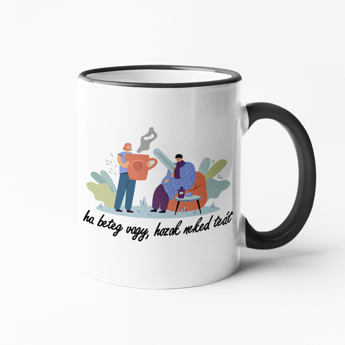 - Színes peremű bögre – ez a modell stílusos kialakításával tűnik ki: finoman színezett perem és nyél, amelyek játékosságot adnak a bögrének, és tökéletesen kiemelik az egyedi feliratot.