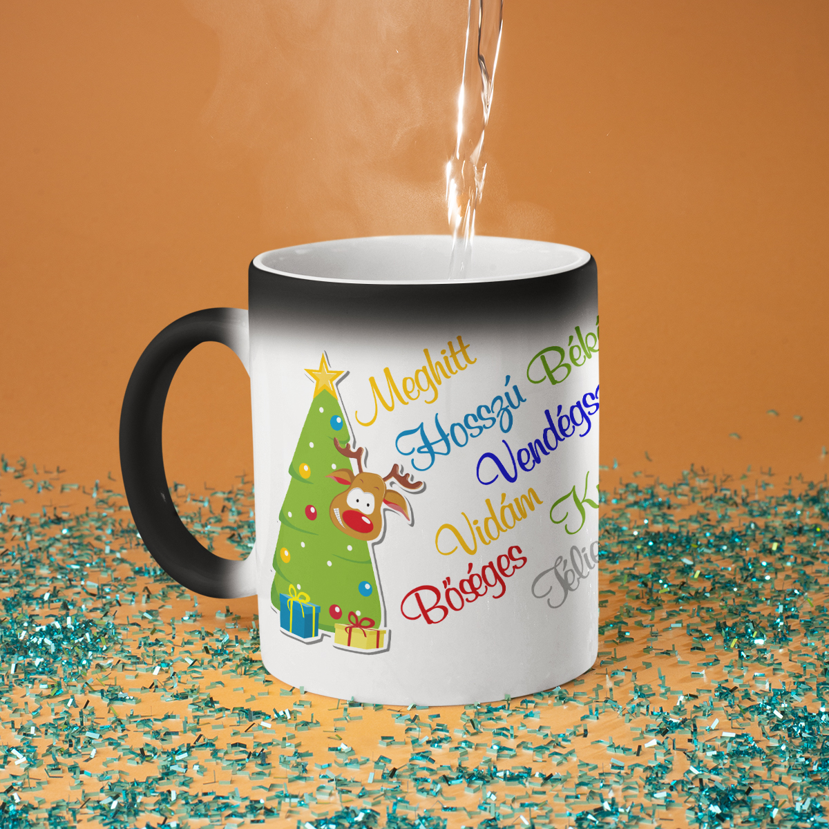 - Varázsbögre – nem véletlenül hívják varázsbögrének! Első ránézésre egy egyszerű fekete bögre, de amikor forró vizet öntesz bele, fehérre változik, és a rejtett nyomat megjelenik. Igazi meglepetés és egy kis csoda minden nap!