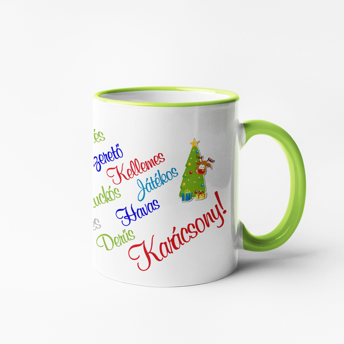 - Színes peremű bögre – ez a modell stílusos kialakításával tűnik ki: finoman színezett perem és nyél, amelyek játékosságot adnak a bögrének, és tökéletesen kiemelik az egyedi feliratot.