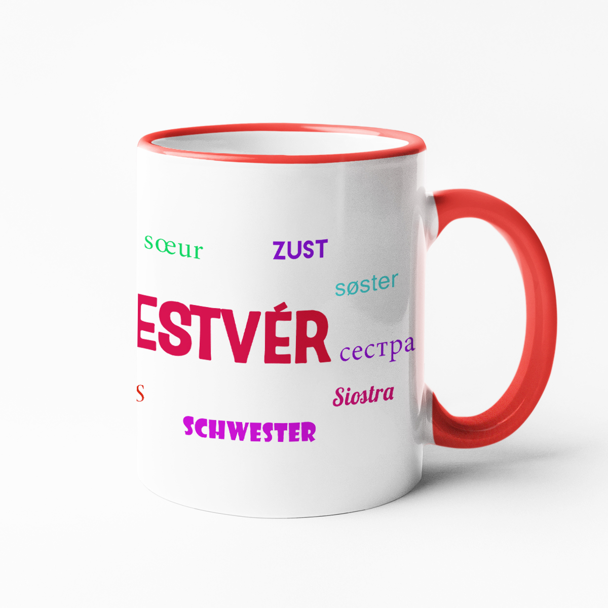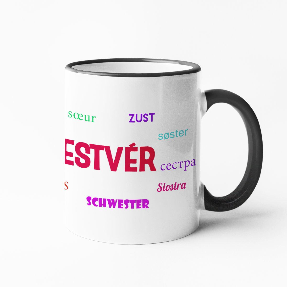 - Színes peremű bögre – ez a modell stílusos kialakításával tűnik ki: finoman színezett perem és nyél, amelyek játékosságot adnak a bögrének, és tökéletesen kiemelik az egyedi feliratot.