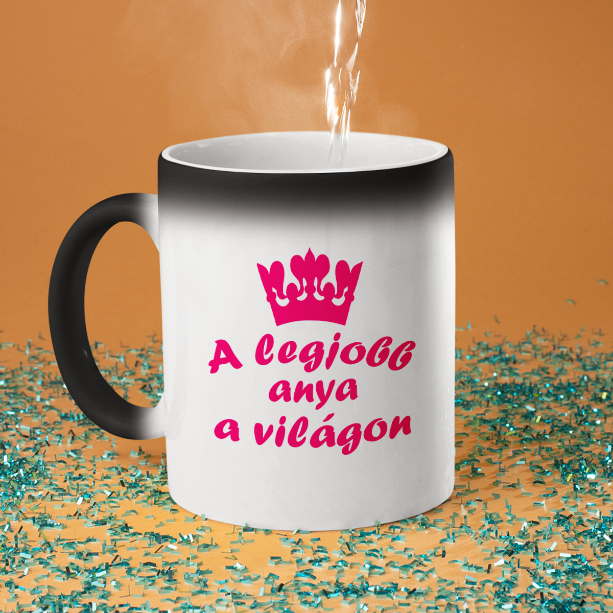 - Varázsbögre – nem véletlenül hívják varázsbögrének! Első ránézésre egy egyszerű fekete bögre, de amikor forró vizet öntesz bele, fehérre változik, és a rejtett nyomat megjelenik. Igazi meglepetés és egy kis csoda minden nap!