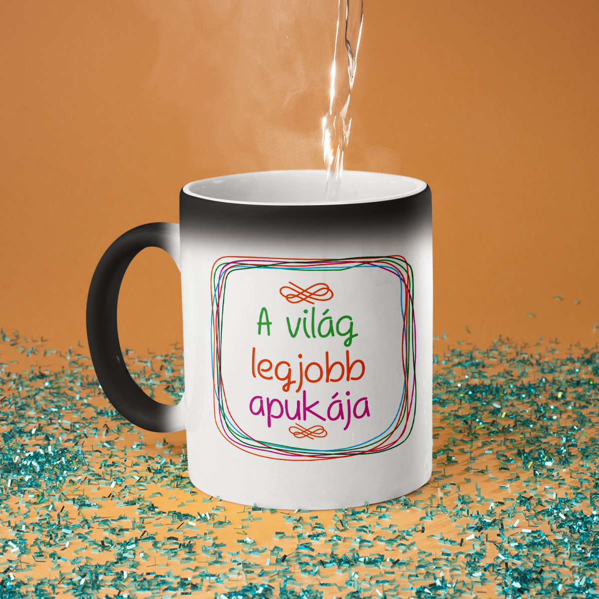 - Varázsbögre – nem véletlenül hívják varázsbögrének! Első ránézésre egy egyszerű fekete bögre, de amikor forró vizet öntesz bele, fehérre változik, és a rejtett nyomat megjelenik. Igazi meglepetés és egy kis csoda minden nap!