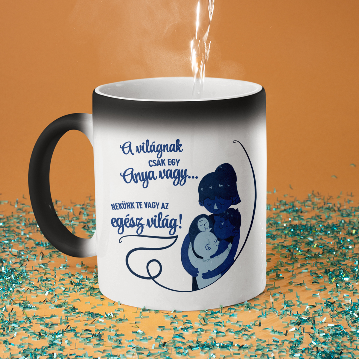 - Varázsbögre – nem véletlenül hívják varázsbögrének! Első ránézésre egy egyszerű fekete bögre, de amikor forró vizet öntesz bele, fehérre változik, és a rejtett nyomat megjelenik. Igazi meglepetés és egy kis csoda minden nap!