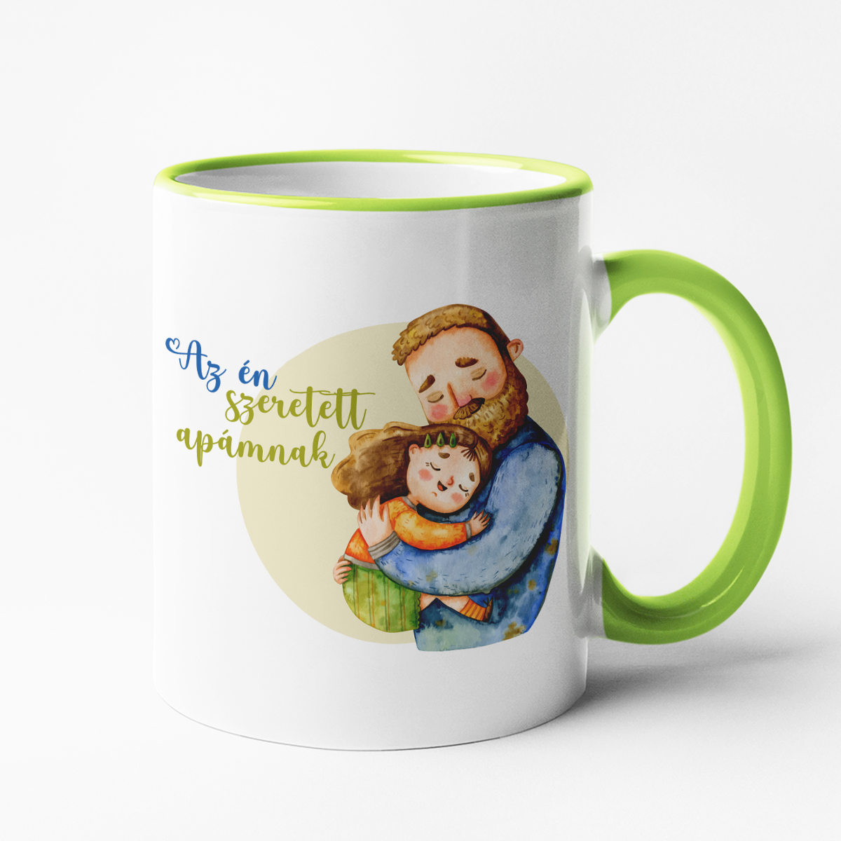 - Színes peremű bögre – ez a modell stílusos kialakításával tűnik ki: finoman színezett perem és nyél, amelyek játékosságot adnak a bögrének, és tökéletesen kiemelik az egyedi feliratot.