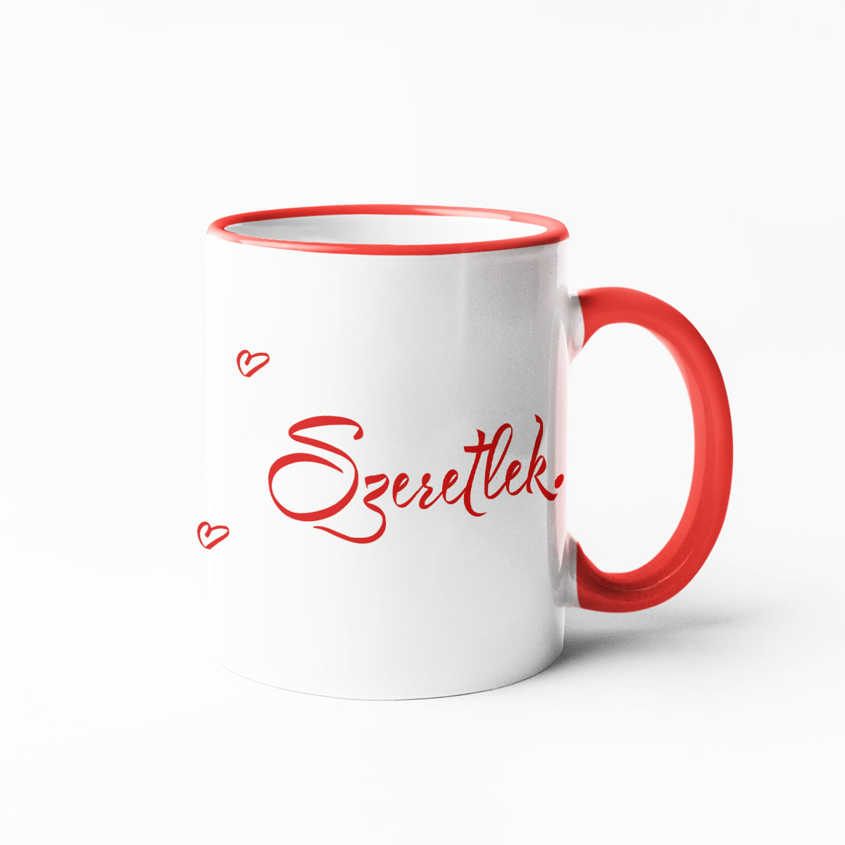 - Színes peremű bögre – ez a modell stílusos kialakításával tűnik ki: finoman színezett perem és nyél, amelyek játékosságot adnak a bögrének, és tökéletesen kiemelik az egyedi feliratot.