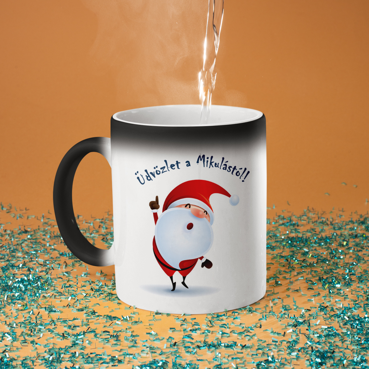 - Varázsbögre – nem véletlenül hívják varázsbögrének! Első ránézésre egy egyszerű fekete bögre, de amikor forró vizet öntesz bele, fehérre változik, és a rejtett nyomat megjelenik. Igazi meglepetés és egy kis csoda minden nap!