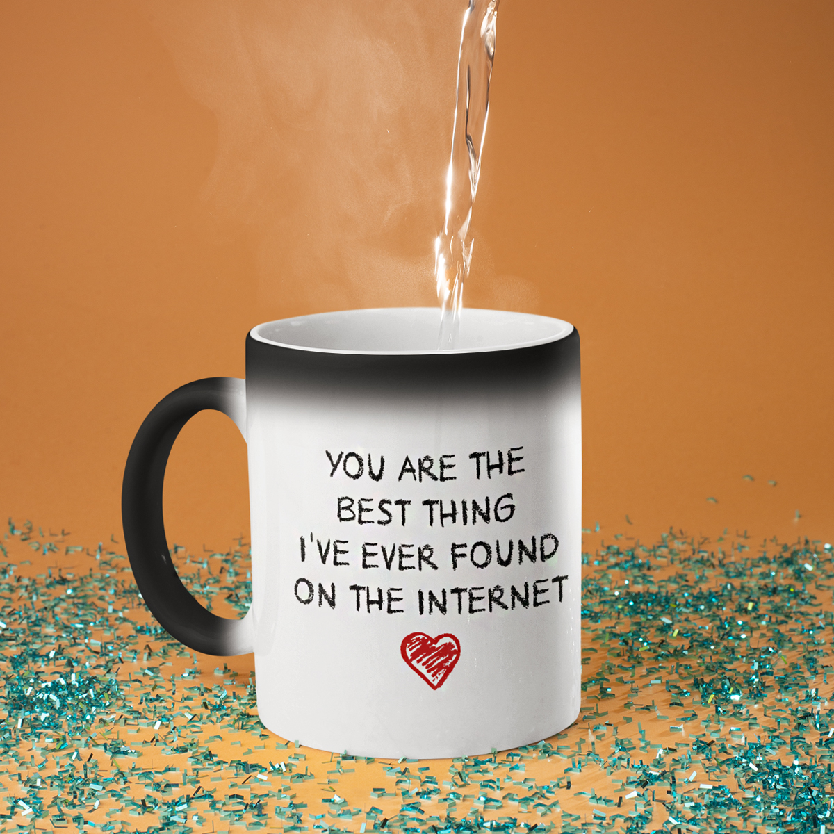 - Varázsbögre – nem véletlenül hívják varázsbögrének! Első ránézésre egy egyszerű fekete bögre, de amikor forró vizet öntesz bele, fehérre változik, és a rejtett nyomat megjelenik. Igazi meglepetés és egy kis csoda minden nap!