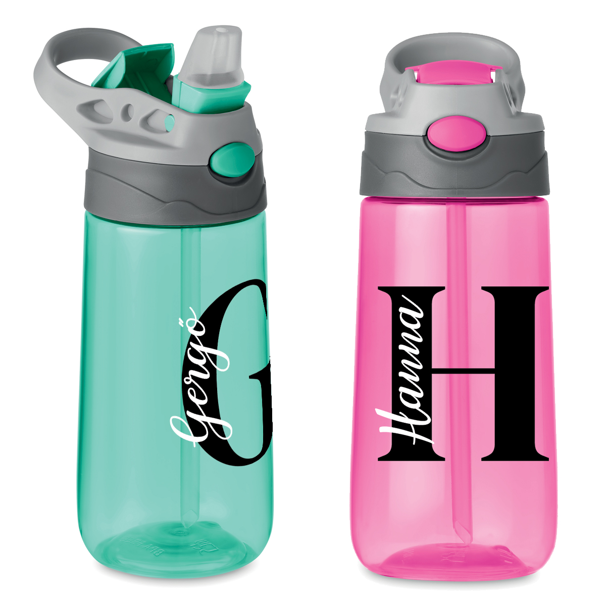 Gyerekek számára készült színes vízpalack a választott névvel (450ml)