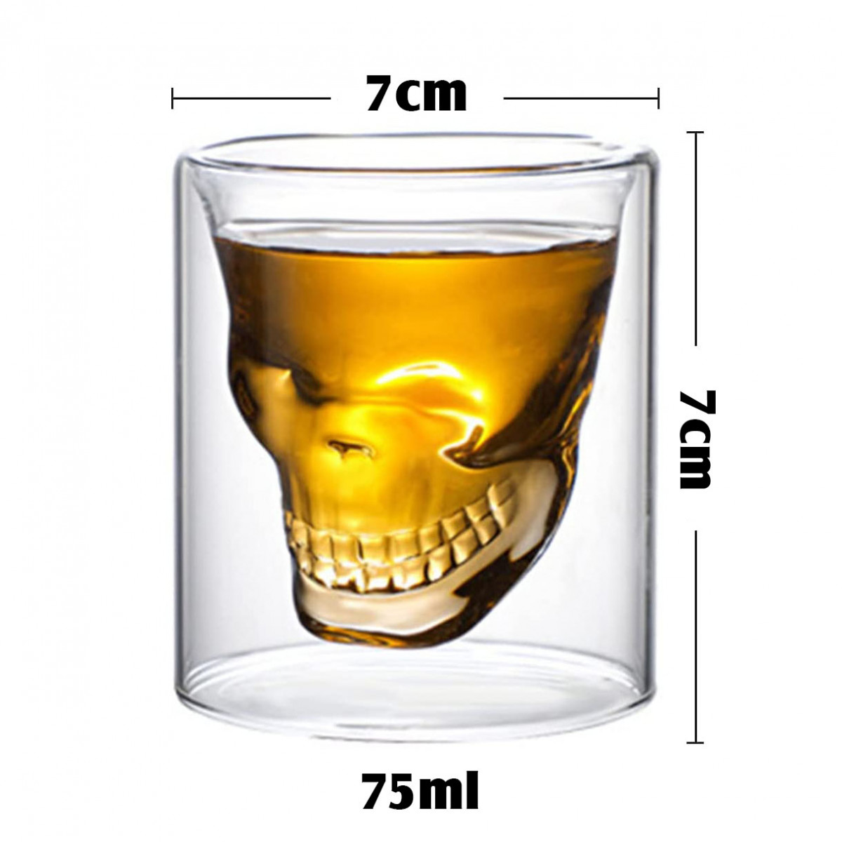 Ez egy kivételesen egyedi és eredeti kialakítású shot pohár szett. A poharak belseje koponya alakú, és az átlátszó üveg kialakításának köszönhetően az italok úgy tűnnek, mintha a levegőben lebegnének.