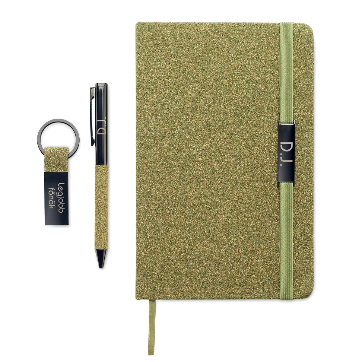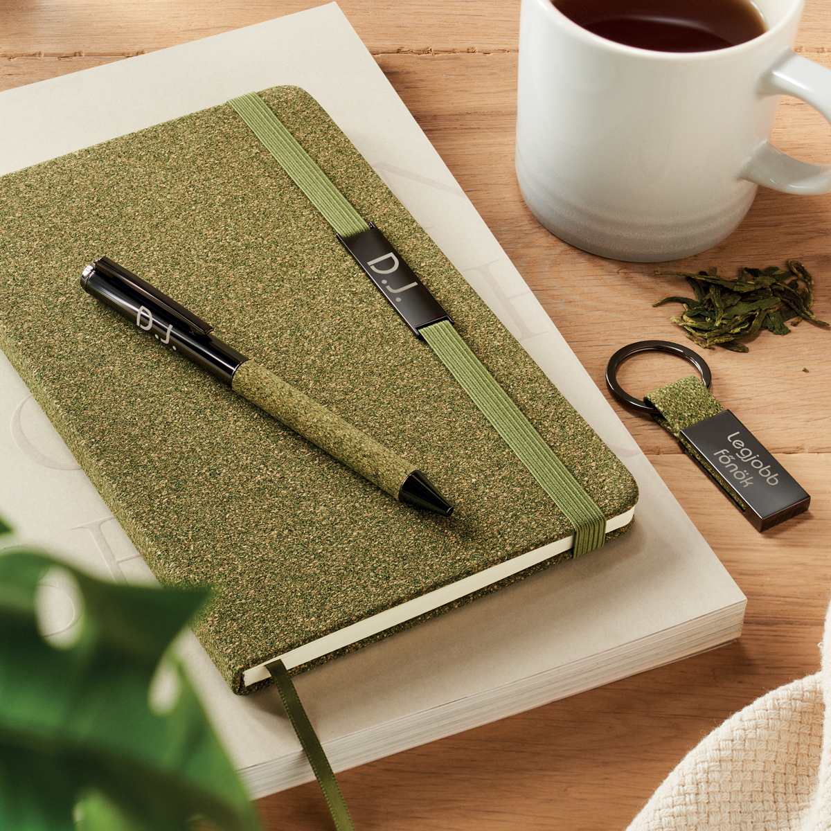 - A füzet borítója parafa anyagból készült, tea alapú részecskékkel.
