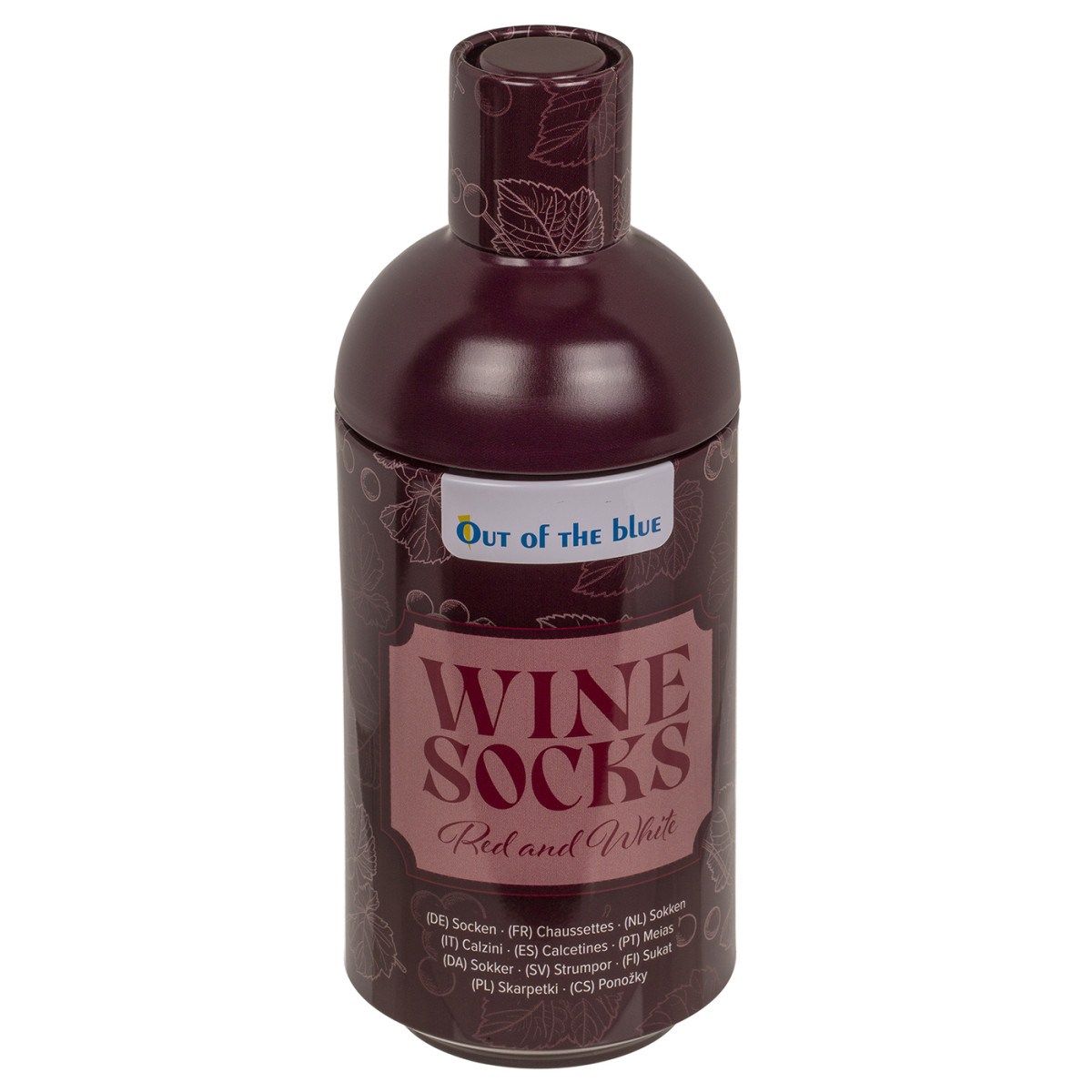 Ezek a zoknik színvilágukkal és csomagolásukkal tűnnek ki - egy borosüvegre emlékeztető fémdobozban érkeznek!