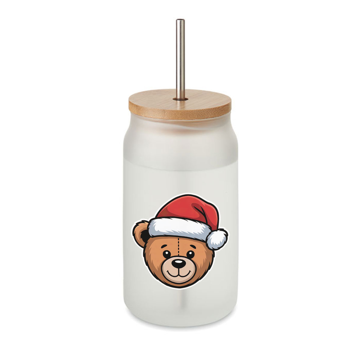 Üveg pohár fém szívószállal "Teddy bear" - hangulatos választás ünnepekre és hétköznapokra!